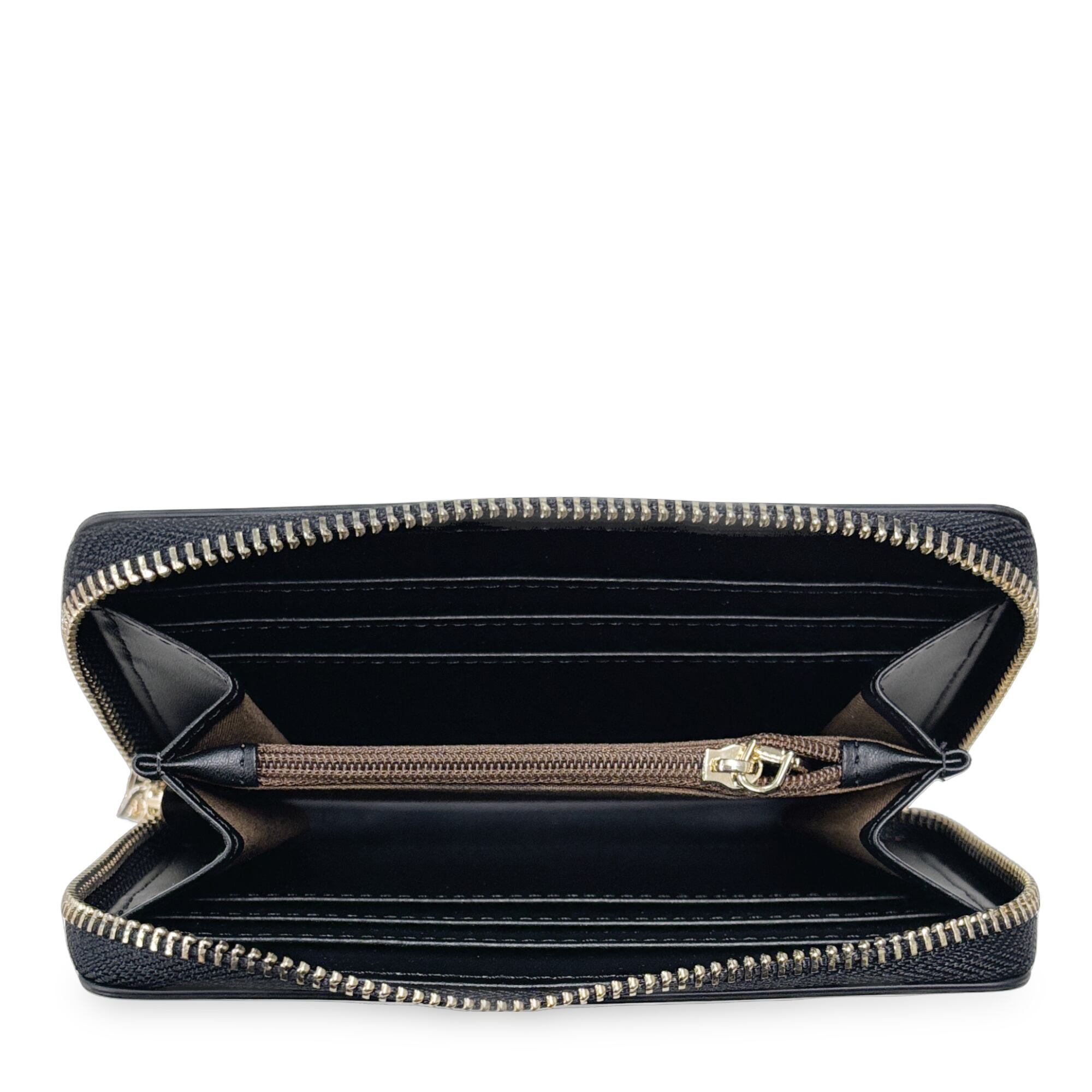 内側にはカードポケットや収納スペース、小銭入れを備えており、現金やカード類をすっきり整理して持ち歩けます。